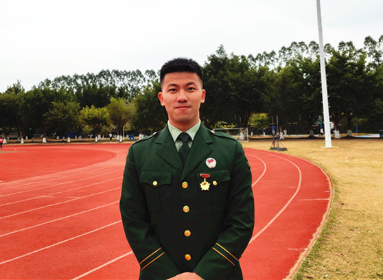 “小時候,我看過一部名為《烈火雄心》的電視劇,講的是消防員奮勇?lián)尵壬?,以濃煙考驗斗志、以烈火洗煉人生的故事,那時我就對執(zhí)行任務類型的職業(yè)非常向往。再加上男生打小對飛機、槍支武器都有一種特殊的感覺,那時候就在想,有機會一定要去部隊歷練一番試試?!比尾敻嬖V記者,大二那年,他終于夢圓軍營,服役于武警河南總隊某中隊?!?個月的新兵連非常充實,隊列訓練、拉練、長途行軍......讓我印象深刻的是在行軍過程中,不管去到什么地方,只要一身軍裝在身,當?shù)氐男∨笥讯紩揖炊Y,老百姓也特別友善,讓我感到非常自豪,這種軍民魚水情讓我感覺非常好?!?/p> 服役期間,因表現(xiàn)突出,任伯聰被評為“優(yōu)秀義務兵”,于2019年退出現(xiàn)役。離開部隊后,他重返大學校園完成學業(yè),并加入了學校的國防教育服務中心,為學校的征兵宣傳工作奔走發(fā)聲。在校期間,任伯聰從未忘記自己曾經(jīng)是一名軍人?!拔覉猿置刻扉L跑10公里,練習單杠,也一直有按照之前部隊的訓練標準來保持鍛煉?!?/p>  左一為任伯聰。