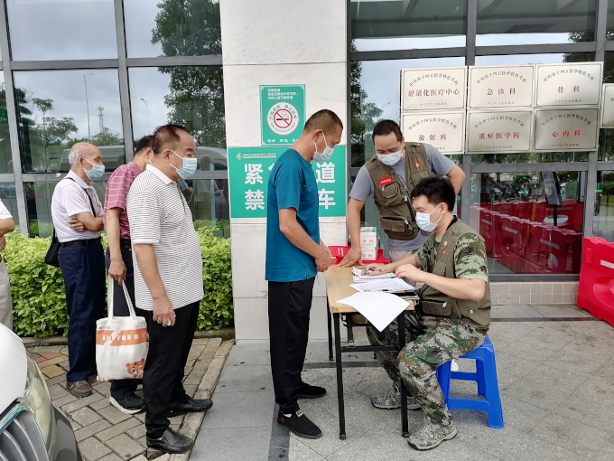 ▲坦洲鎮(zhèn)退役軍人服務中心工作人員和志愿者在坦洲人民醫(yī)院現(xiàn)場指引重點優(yōu)撫對象有序進行健康體檢。