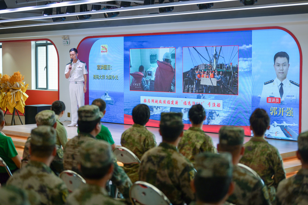 郭開強(qiáng):勇闖大洋 為國爭光 2008年12月,應(yīng)聯(lián)合國授權(quán)請求,奉中央軍委命令,南海艦隊(duì)武漢艦、??谂?、微山湖艦組成第1批護(hù)航編隊(duì),拉開了人民海軍舉世矚目的亞丁灣、索馬里護(hù)航序幕,這是自600多年前鄭和下西洋以來,中國真正意義上的遠(yuǎn)海非戰(zhàn)爭軍事行動(dòng),開啟了人民海軍從“黃水”駛向“藍(lán)水”的壯麗航程。 91878部隊(duì)郭開強(qiáng)干事為大家?guī)碇黝}宣講《勇闖大洋 為國爭光》。 郭開強(qiáng)介紹—— 迄今為止,人民海軍已累計(jì)派出44批100余艘次艦艇參加亞丁灣、索馬里海域護(hù)航,完成1500多批7000余艘中外船舶護(hù)航任務(wù),解救、接護(hù)各類船舶近百艘,其中外國船舶超過50%。 護(hù)航官兵一次次直面生死、一次次化解危機(jī)、一次次挑戰(zhàn)極限,用忠誠與奉獻(xiàn)、責(zé)任與擔(dān)當(dāng),彰顯大國海軍形象,譜寫了人民海軍邁向世界一流海軍的新時(shí)代壯歌。 張長城分享軍旅故事。記者 易承樂 攝