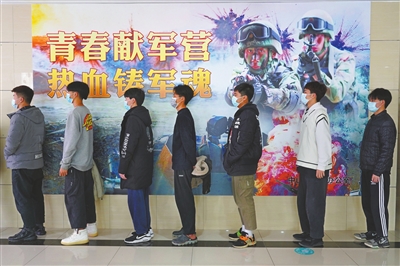 在體檢集合處,“參軍報(bào)國,無上光榮”等字眼隨處可見。