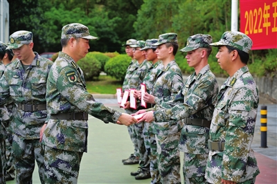 中山網(wǎng)訊 5月30日上午,五桂山街道舉行民兵出入隊歡迎(送)儀式?!跋蚯埃∠蚯?!向前!我們的隊伍向太陽……”伴隨著嘹亮的集體大合唱,歡送儀式正式開始。14名“老民兵”摘下領(lǐng)花,卸下肩章,告別民兵組織,投身地方建設(shè)。記者現(xiàn)場獲悉,當(dāng)天,武裝部還進(jìn)行了新民兵入隊訓(xùn)練。 在訓(xùn)練現(xiàn)場,民兵們身著迷彩服,精神飽滿,軍容嚴(yán)整。立正、稍息、站軍姿、體能訓(xùn)練……在教練員的教導(dǎo)下,新入隊民兵進(jìn)行了一系列基礎(chǔ)訓(xùn)練。訓(xùn)練之余,教練員還通過集中授課、面對面交談等方式開展條令條例、法規(guī)、軍兵種知識等內(nèi)容學(xué)習(xí)和基礎(chǔ)理論授課,并介紹五桂山街道民兵建設(shè)歷程和優(yōu)良傳統(tǒng)及取得的榮譽,提高入隊民兵的集體意識、吃苦意識和奉獻(xiàn)精神,使其樹立起聽黨指揮、服務(wù)人民、英勇善戰(zhàn)、崇尚榮譽等信念。 在啟動新民兵基礎(chǔ)訓(xùn)練的同時,退隊的老民兵獲頒光榮退隊榮譽證書。 |