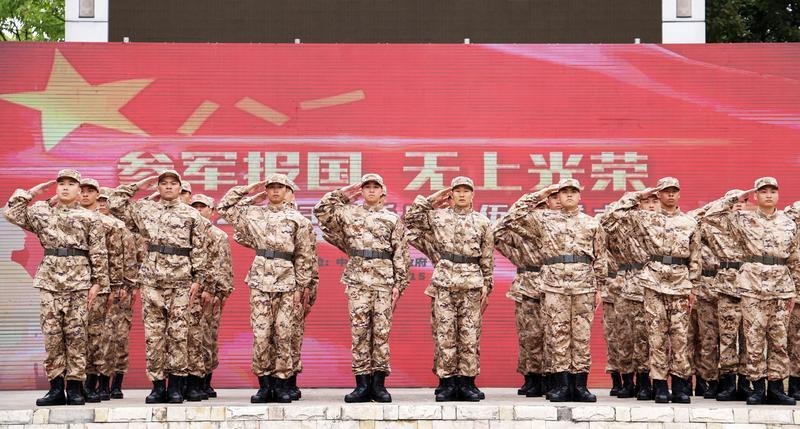 “我是中國人民解放軍軍人,我宣誓:服從中國共產(chǎn)黨的領(lǐng)導(dǎo),全心全意為人民服務(wù),服從命令,嚴守紀律……”鏗鏘有力的誓言將送兵儀式推向高潮,新兵們的錚錚誓言響徹云霄,現(xiàn)場熱血沸騰。 新兵進行入伍宣誓。記者 文波 攝