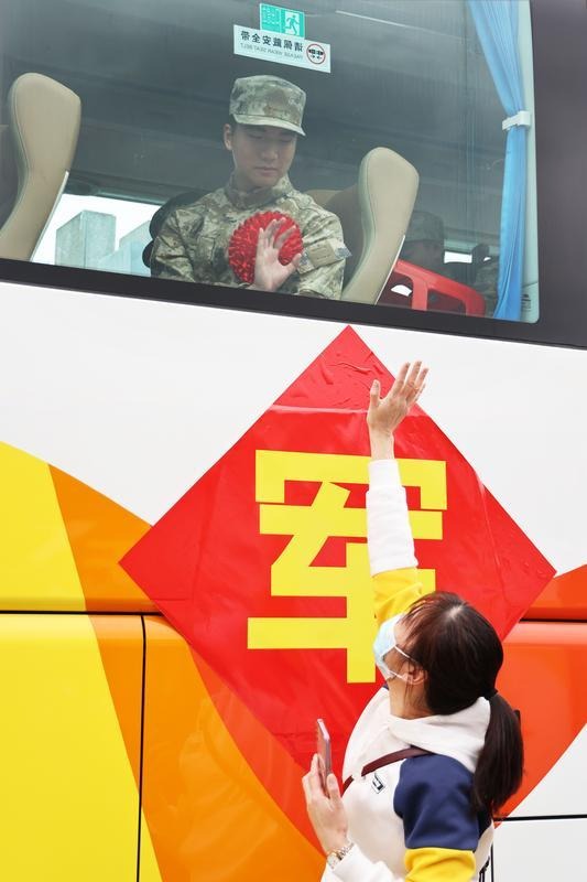 東區(qū)街道新兵潘子晨的母親鄭紅麗深情囑咐道:“兒行千里母擔(dān)憂。你們此行遠離家鄉(xiāng)和親人,一定要銘記父老鄉(xiāng)親對你們的殷殷囑托,無論是在邊疆巡邏、高山上練兵,還是為祖國站崗,希望你們在部隊里傳承中山人敢為人先的闖勁,沖鋒在前,勇?lián)笕?,努力為中山人民爭光添彩!我們將為你們營造一個穩(wěn)固的‘大后方’,時刻支持你們?!?/p> 滿載著新兵的客車徐徐駛離。記者 文波 攝