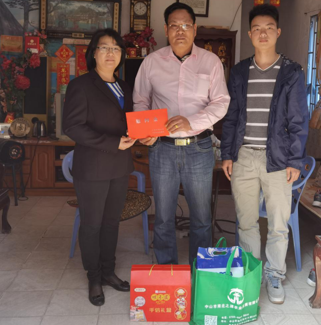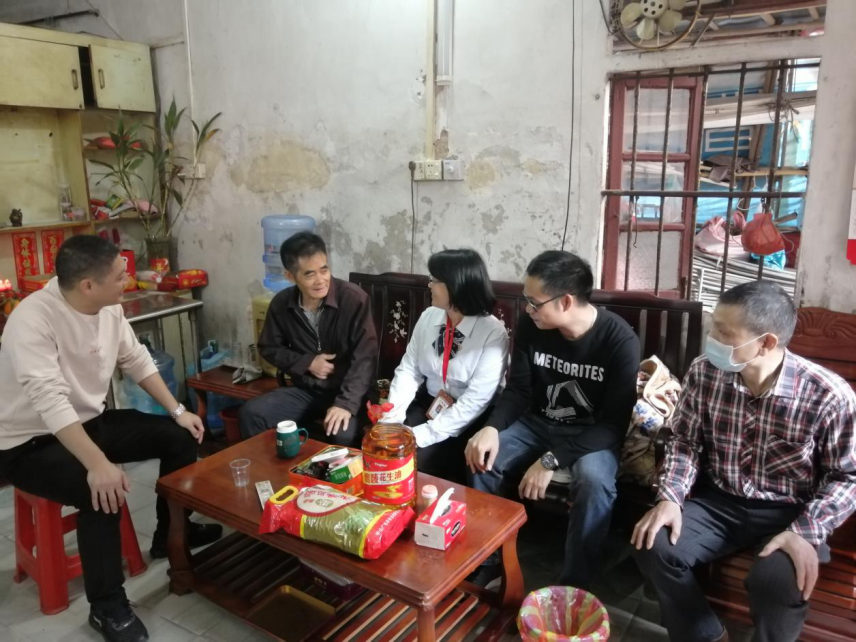 梁澤祥(右2)是參戰(zhàn)退役軍人,慰問(wèn)組轉(zhuǎn)達(dá)了市退役軍人事務(wù)局、市工商聯(lián)和石岐青協(xié)對(duì)他的問(wèn)候。