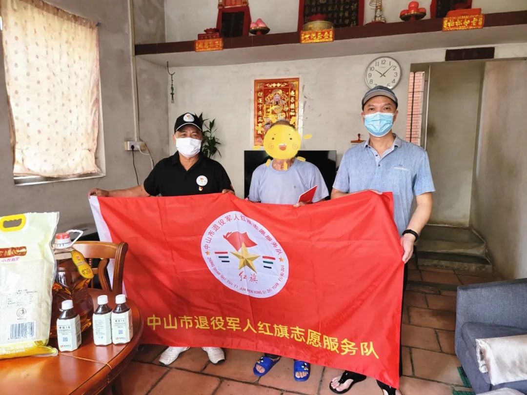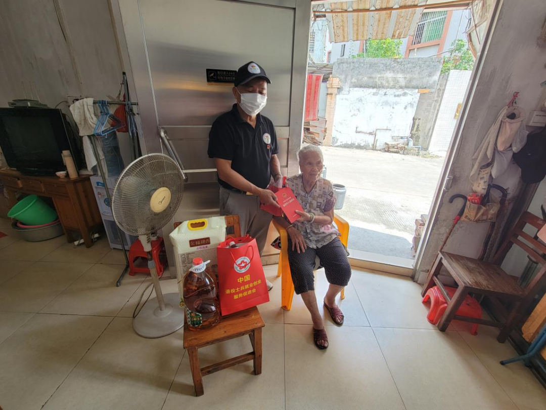 7月27日-29日,鎮(zhèn)退役軍人紅旗志愿服務(wù)隊(duì)隊(duì)員利用休息時(shí)間深入各村(居),帶著米、油、飲料等生活用品走進(jìn)困難退役軍人家庭和烈屬家中。
