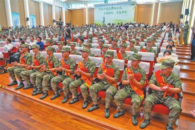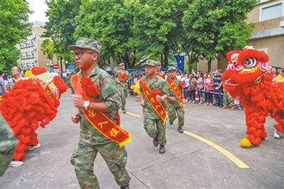 身著迷彩服,佩戴光榮花,一張張青春臉龐上滿是憧憬之情。金秋九月,中山又一批有志青年背上行囊,意氣風發(fā)奔赴軍營。 今年下半年,全市共有3000多名適齡青年報名應(yīng)征,經(jīng)過體檢、政治考核、役前教育等層層選拔,共征集了300多名男兵,在讀大學生征集比例、大學畢業(yè)生征集比例再創(chuàng)歷史新高,圓滿完成了上級賦予的任務(wù)。 “希望你們不管在何處服役,是哪個兵種,都銘記父老鄉(xiāng)親的殷殷囑托,在部隊大力弘揚中山‘敢想敢闖、敢為人先’的精神,展示出‘中山兵’的良好精神風貌,沖鋒在前、勇?lián)笕?、奮斗奉獻,努力為中山增光添彩。祝新戰(zhàn)友們一路順風,刻苦訓練,能打勝仗,捷報頻傳!”在出席中山2023年下半年新兵歡送儀式時,中山市征兵工作領(lǐng)導小組副組長、中山軍分區(qū)大校司令員李云濤鄭重地說。 來自三鄉(xiāng)鎮(zhèn)的新兵代表馮林研究生畢業(yè)于青島農(nóng)業(yè)大學,他鄭重承諾:“到部隊后我們一定牢記使命,安心服役、刻苦訓練、嚴守紀律、積極進取,為祖國和平安寧扛好槍、站好崗,不辜負國家和家鄉(xiāng)人民的期望!” 敲鑼打鼓,列隊歡迎。一場歡送儀式,就是一次生動的國防教育。歡送儀式上,除了以東鳳鎮(zhèn)新兵張學培家庭“三代從軍”事跡為背景創(chuàng)作的原創(chuàng)詩歌朗誦《致敬夢想的接力》、男聲四重唱《強軍戰(zhàn)歌》等文藝表演,新兵還展示了軍體拳,動作干凈利落整齊,儼然已有軍人的模樣?,F(xiàn)場,省級非物質(zhì)文化遺產(chǎn)起灣金龍展演也來助陣,只見金龍起舞、鑼鼓喧天,熱鬧非凡。 兒行千里母擔憂,歡送現(xiàn)場,不少家長熱淚盈眶,拿起手機記錄著孩子入伍的珍貴畫面,送兵車緩緩啟動,家長們的目光卻始終不肯轉(zhuǎn)移。一路跟隨,久久不肯離去…… 登上大巴車,新兵們揮一揮手:“再見,中山!軍營,我來啦!” 記者 黃藝杰 張倩 通訊員 黃嘉裕 圖編 文智誠 ◆編輯:龍慧◆二審:蘇鵬蘊◆三審:周亞平 |