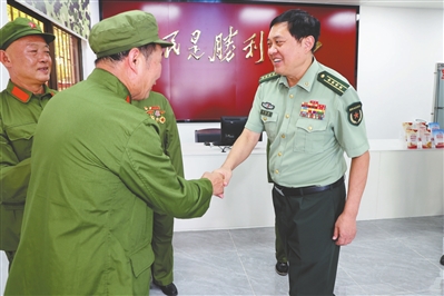 中山軍分區(qū)大校政治委員劉燦瑩慰問(wèn)鎮(zhèn)街退役老兵、基干民兵。