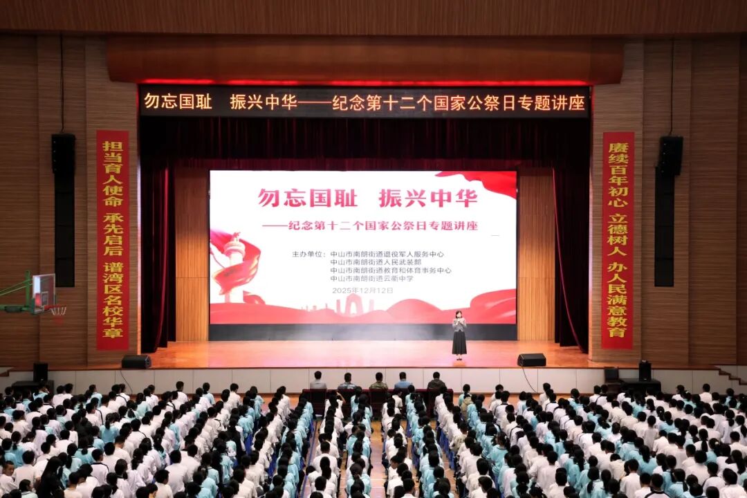 以史為鑒,砥礪前行。在第十二個南京大屠殺死難者國家公祭日即將到來之際,12月12日下午,中山南朗街道人民武裝部、退役軍人服務中心聯(lián)合南朗街道教育和體育事務中心在中山紀念中學教育集團云衢中學開展愛國主義教育,700余名師生齊聚一堂,緬懷遇難同胞、傳承愛國精神。