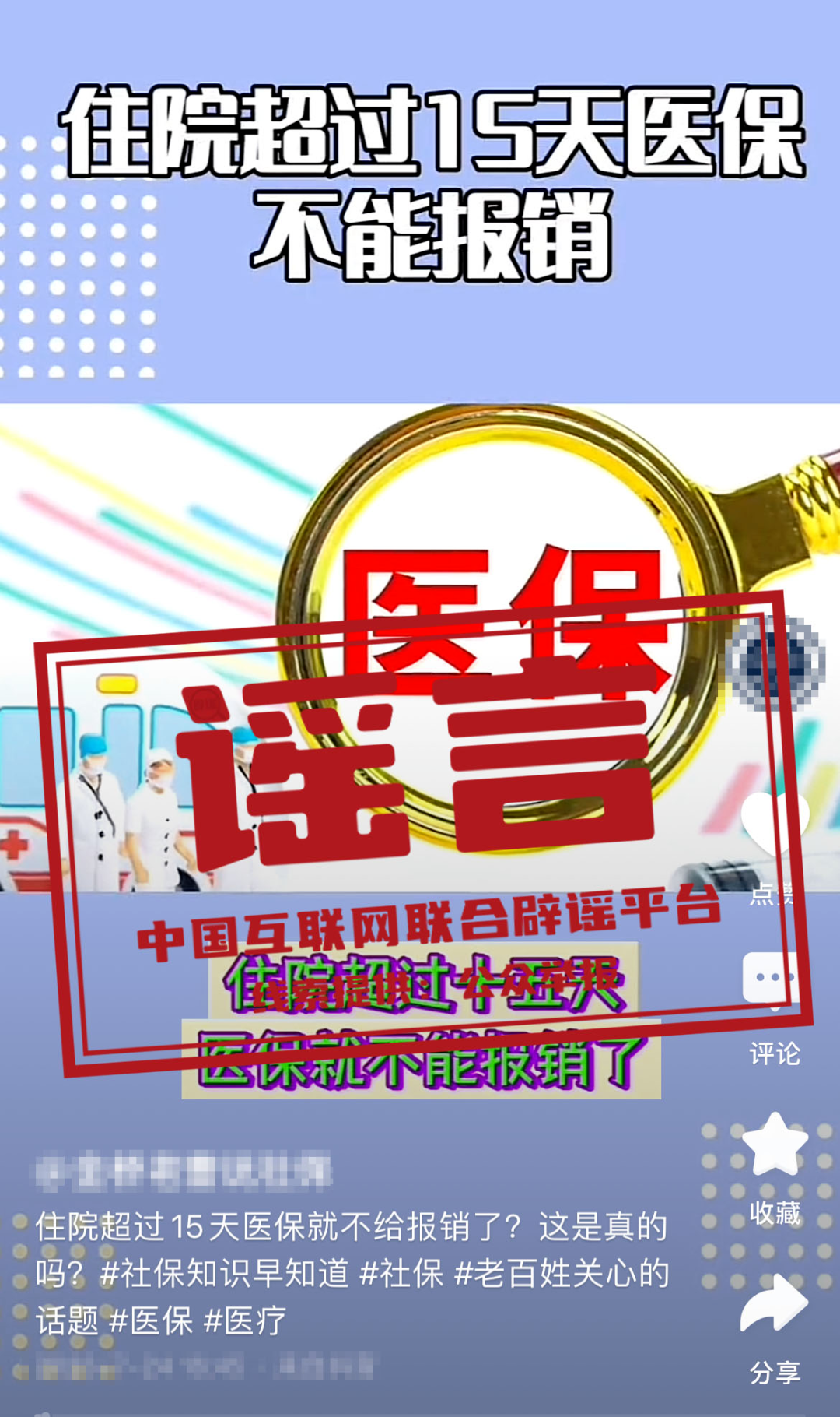 真相:針對(duì)“單次住院超過(guò)15天醫(yī)保不能報(bào)銷”的網(wǎng)絡(luò)傳言,國(guó)家醫(yī)保局相關(guān)負(fù)責(zé)人在4月11日舉行的2024年上半年例行新聞發(fā)布會(huì)上表示,國(guó)家醫(yī)保部門從未出臺(tái)“單次住院不超過(guò)15天”之類的限制性規(guī)定,對(duì)少數(shù)醫(yī)療機(jī)構(gòu)將醫(yī)保支付標(biāo)準(zhǔn)的“均值”變“限額”、以“醫(yī)保額度到了”的理由強(qiáng)行要求患者出院、轉(zhuǎn)院或自費(fèi)住院的情況,國(guó)家醫(yī)保局堅(jiān)決反對(duì)并歡迎群眾向當(dāng)?shù)蒯t(yī)保部門反映,也可以直接向國(guó)家醫(yī)保局反映。(來(lái)源:國(guó)家醫(yī)保局)