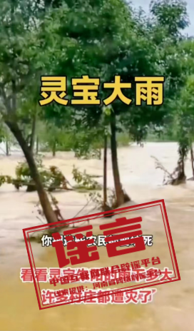 7月16日,某網(wǎng)民在短視頻平臺發(fā)布“靈寶大雨,看看**鎮(zhèn)的雨下多大,許多村莊都遭災(zāi)了”的信息。經(jīng)核實,該內(nèi)容系虛假信息,與事實嚴(yán)重不符。目前,該視頻已刪除。