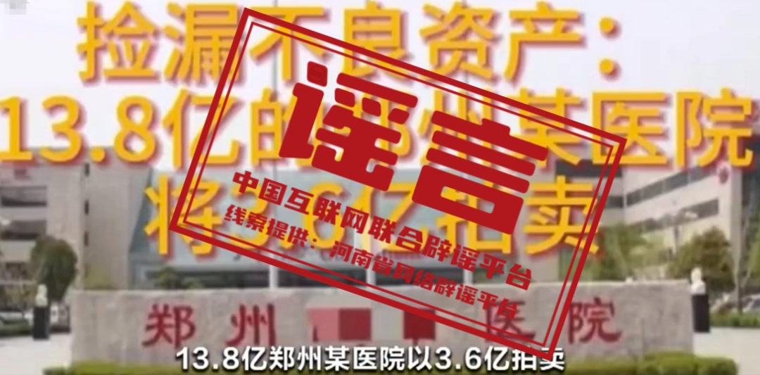 謠 言 鄭州某醫(yī)院將以3.6億元被拍賣?