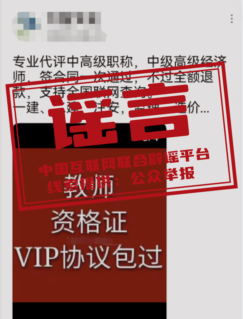 謠 言 一站式代評職稱、免試包過?