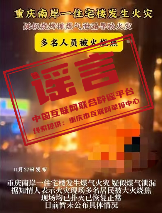 謠 言 重慶南岸一住宅樓起火,“19人死亡”?