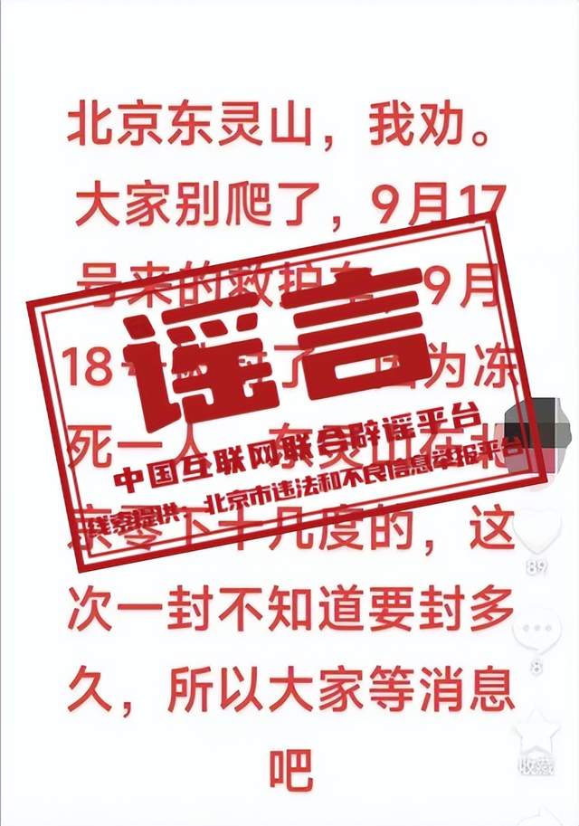 謠言:有人在山頂凍死致北京東靈山“封山”?
