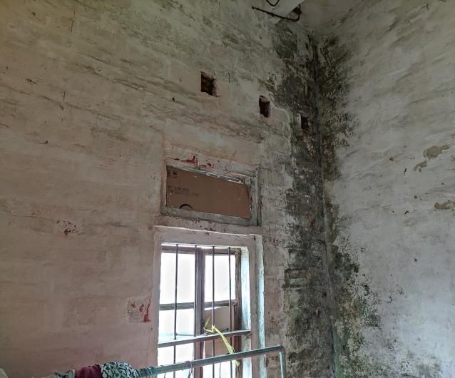 當(dāng)天下午,兩名向日葵社工來到了阿耿家中,阿耿看到社工的到來,仿佛看到了希望的曙光。阿耿家非常的破舊,是一幢年久失修的紅磚房,門窗都是木頭制成的,已經(jīng)破爛不堪。進(jìn)到房子里面,看到阿耿現(xiàn)在是把廚房用具搬到了客廳,本來就小的客廳顯得更加的擁擠。幾句寒暄過后,阿耿帶社工去到出現(xiàn)漏水情況的房間,一進(jìn)到房間,社工就發(fā)現(xiàn)房間墻身已經(jīng)出現(xiàn)了非常嚴(yán)重的發(fā)霉情況,甚至有部分墻壁還長出了青苔,阿耿說:“這已經(jīng)出現(xiàn)很長一段時間了,前段時間下雨,墻壁一直滲水,這個房間原本是我住的房間,因為滲水情況越來越嚴(yán)重,就搬到旁邊原來作為廚房的房間居住,而且窗戶的玻璃都已經(jīng)全部掉落了,現(xiàn)在這個房間已經(jīng)完全不能住人了?!卑⒐⒄f完,就告訴社工還有另一處漏水的地方??吹搅硪惶幝┧牡胤剑绻ぐl(fā)現(xiàn)墻壁因長期滲水導(dǎo)致墻面剝落且墻體分離,到處都是霉斑。阿耿表示,這是漏水情況最嚴(yán)重的房間,房子的其他地方也出現(xiàn)了不同程度的漏水,隨后,阿耿把社工帶到客廳,把其他漏水的地方和情況也向社工反饋。社工看到阿耿現(xiàn)在居住在如此破爛的房子,不禁感到一陣酸楚,同時也跟阿耿商討著怎樣去解決漏水的問題。