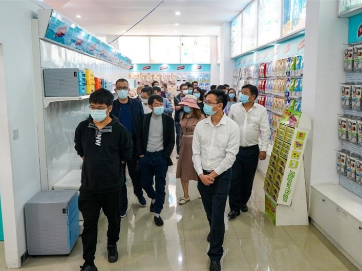 4月25日,中山市互聯(lián)網(wǎng)行業(yè)黨委、中山市網(wǎng)絡文化協(xié)會一行赴沙溪鎮(zhèn)調(diào)研,現(xiàn)場參觀直播帶貨,了解直播電商業(yè)務及企業(yè)發(fā)展情況。